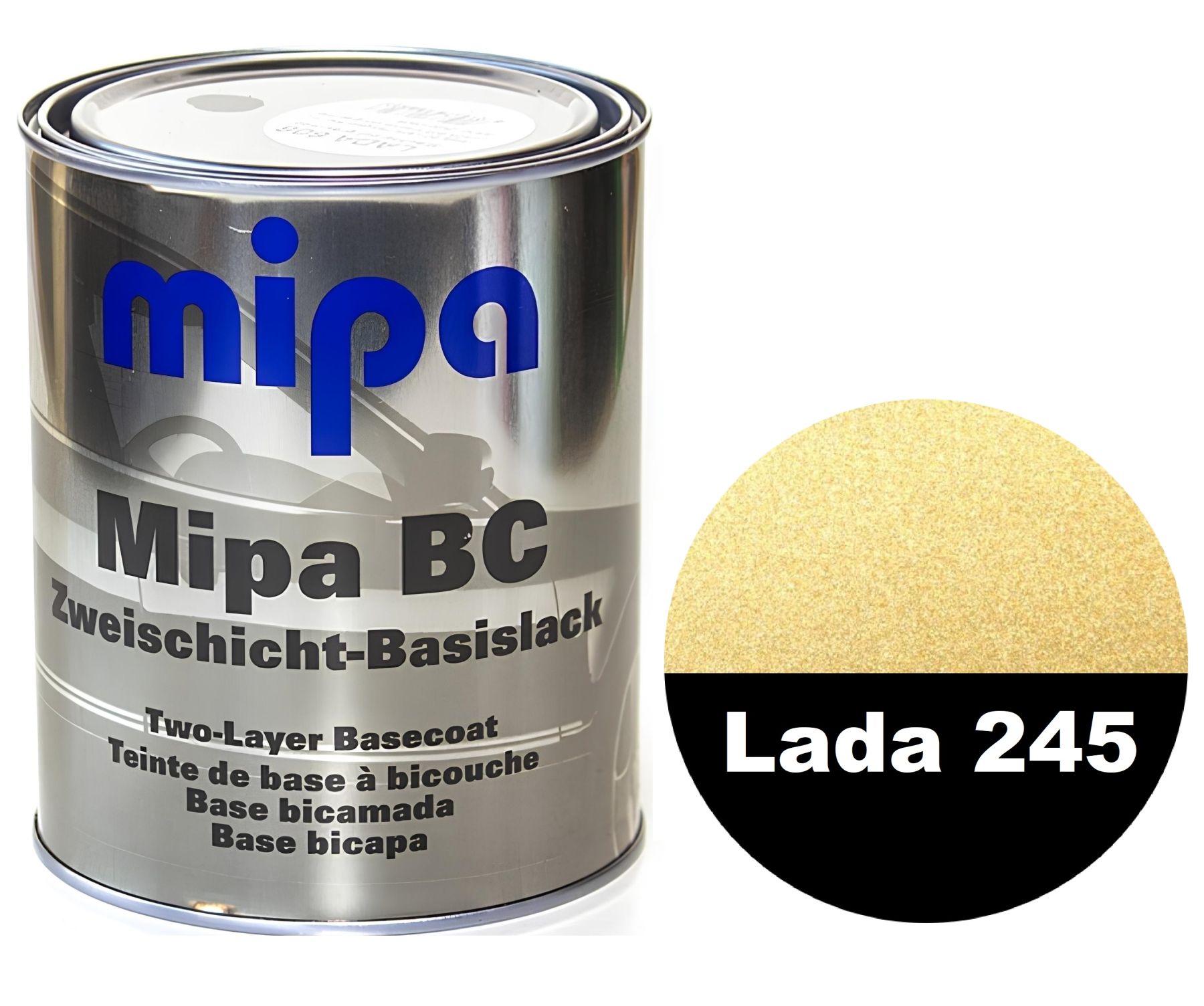 Базова автоемаль "Lada 245 Золота нива Mipa" 1л (металік) [Міпа Лада 245] - високоякісна базова емаль для двошарової і тришарової системи фарбування з ефектом "металік" і "перламутр". Ця базова емаль для авто може застосовуватися на будь-яких підготовлених під фарбування поверхнях. До складу не входить свинець, що робить її безпечною для використання. Проста в застосуванні, вона володіє відмінною покривною здатністю і чудовими декоративними якостями після нанесення на неї 2К акрилових лаків.